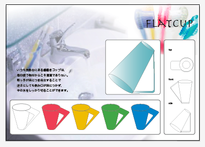 取っ手が自立しするコップを考えて、逆さにしても飲み口が下につかないちおうコンセプトです。